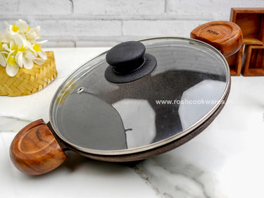 Home Wooden Handle - Appam Pan - Cast Iron-Non Grinded - With Lid