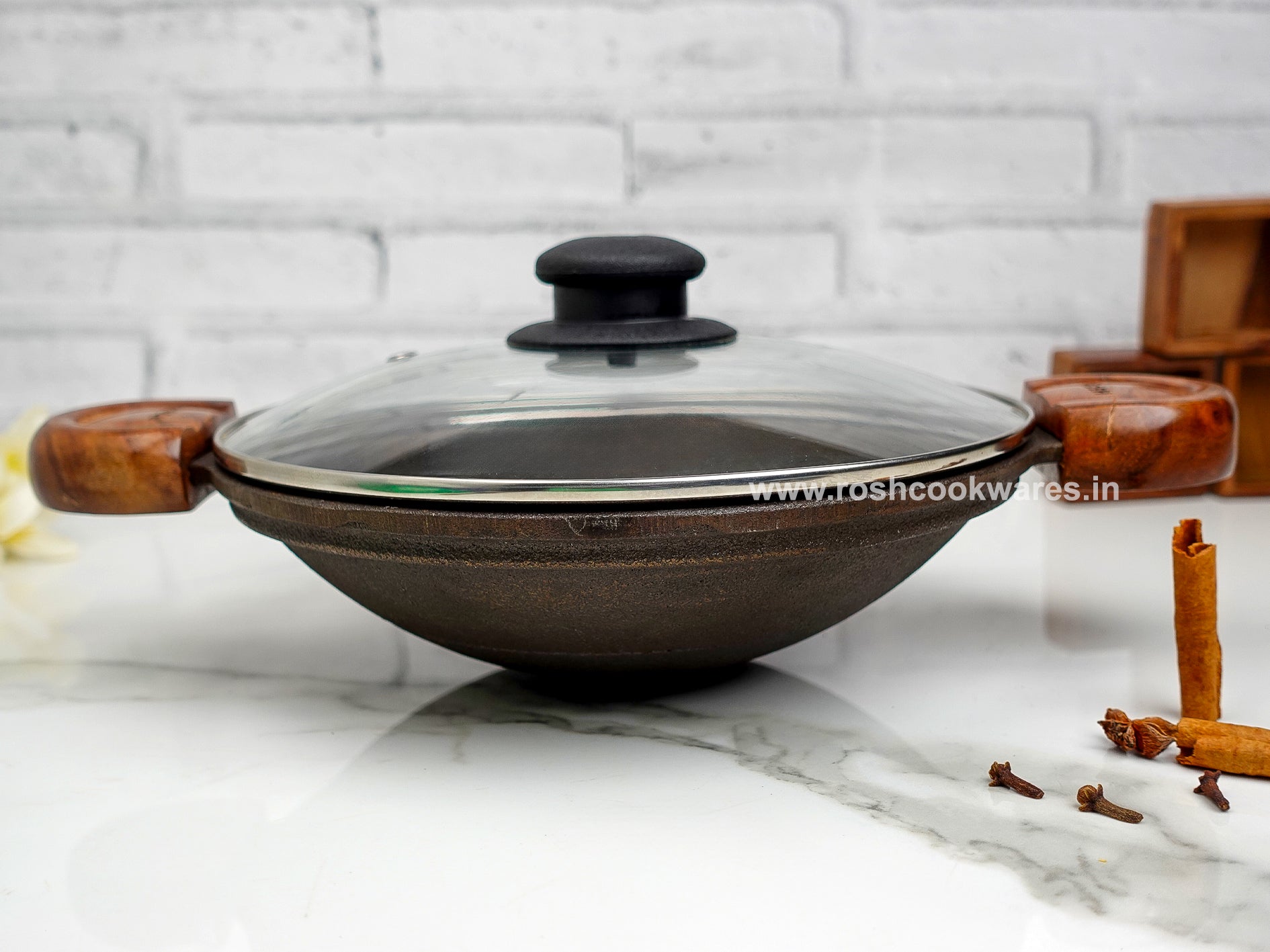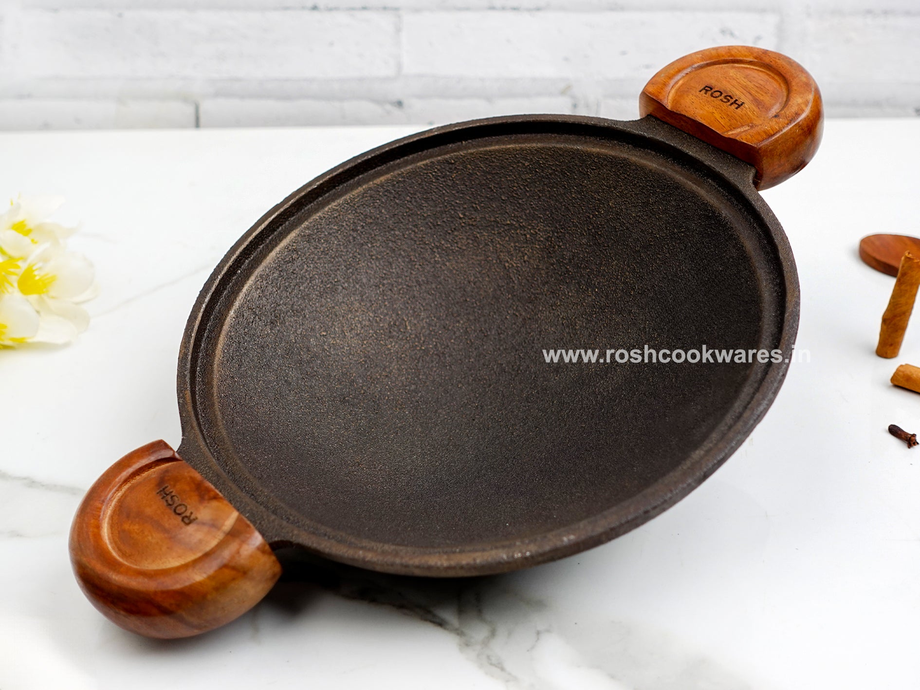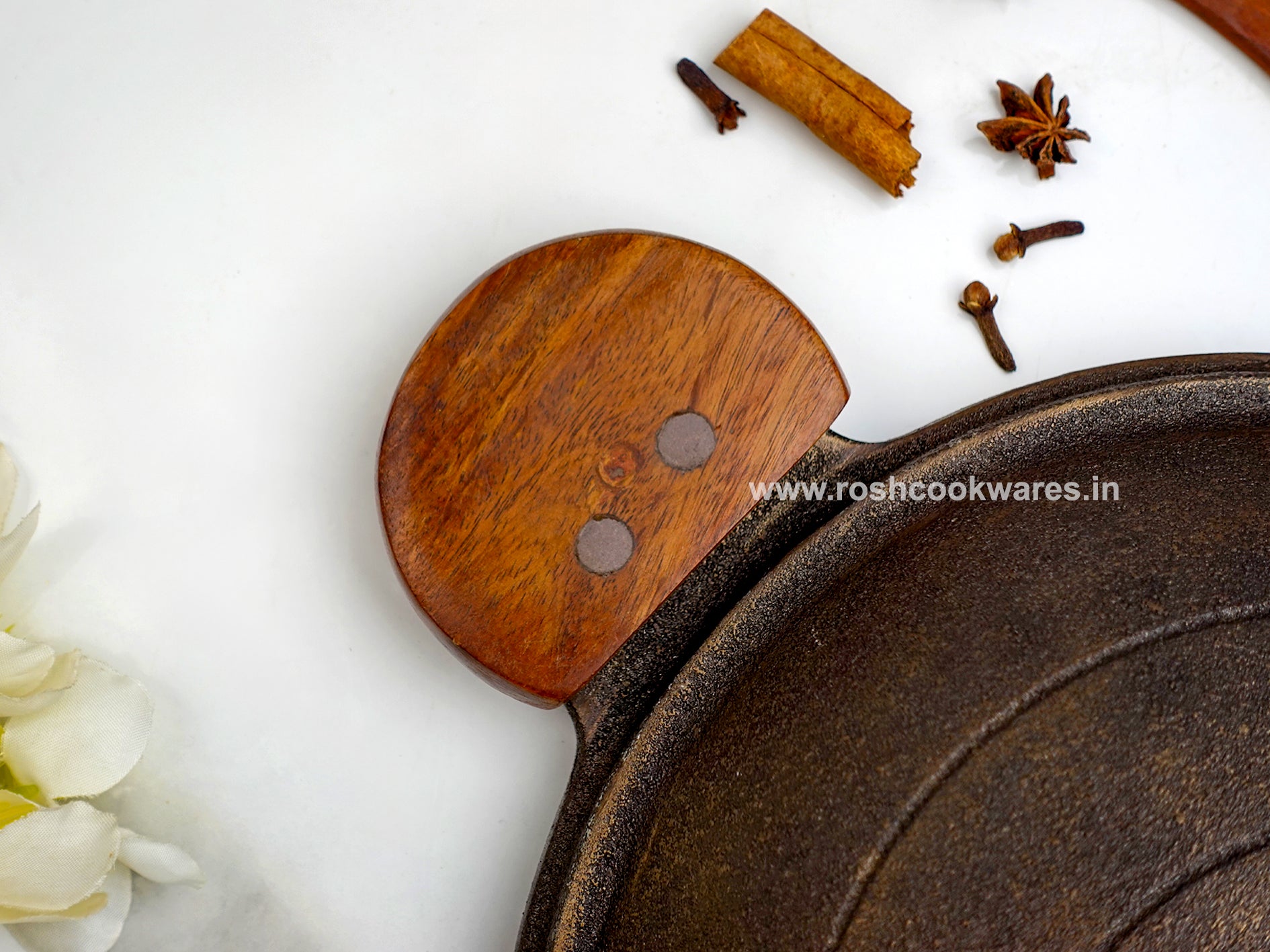 Wooden Handle - Appam Pan - Cast Iron-Non Grinded - With Lid