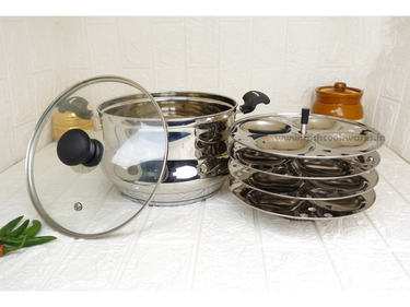 Idly Cooker - Steel - (Curve Body ) - 4 Plates - 16 Pits Pan . Sandwich Bottom .