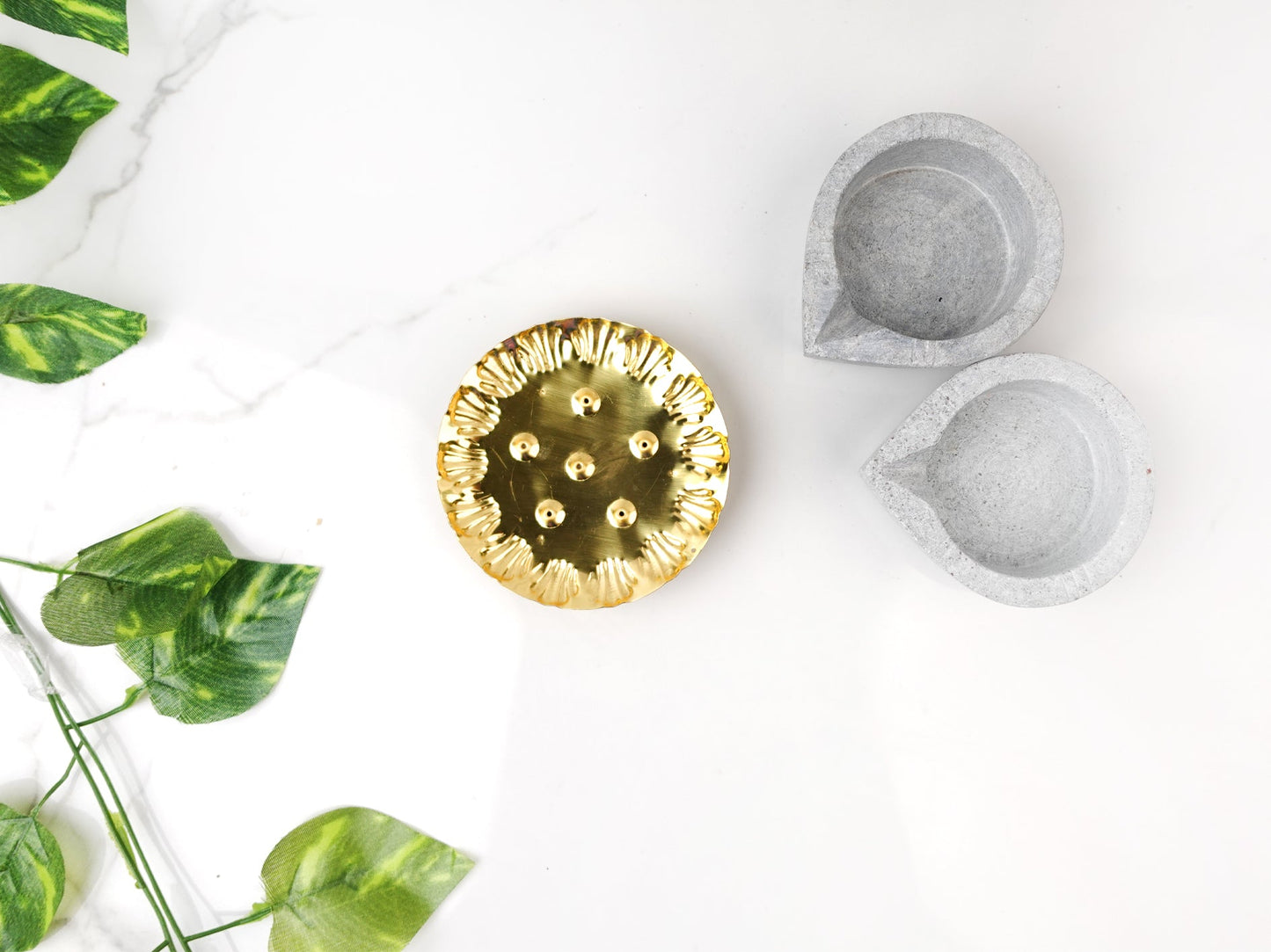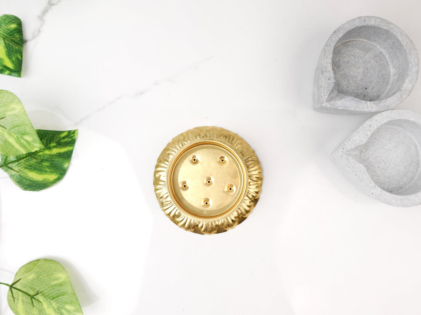Agarbhathi Stand - 5 Pit Round - Brass (Plated).