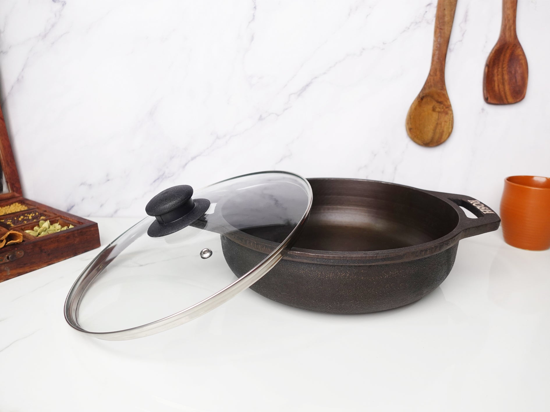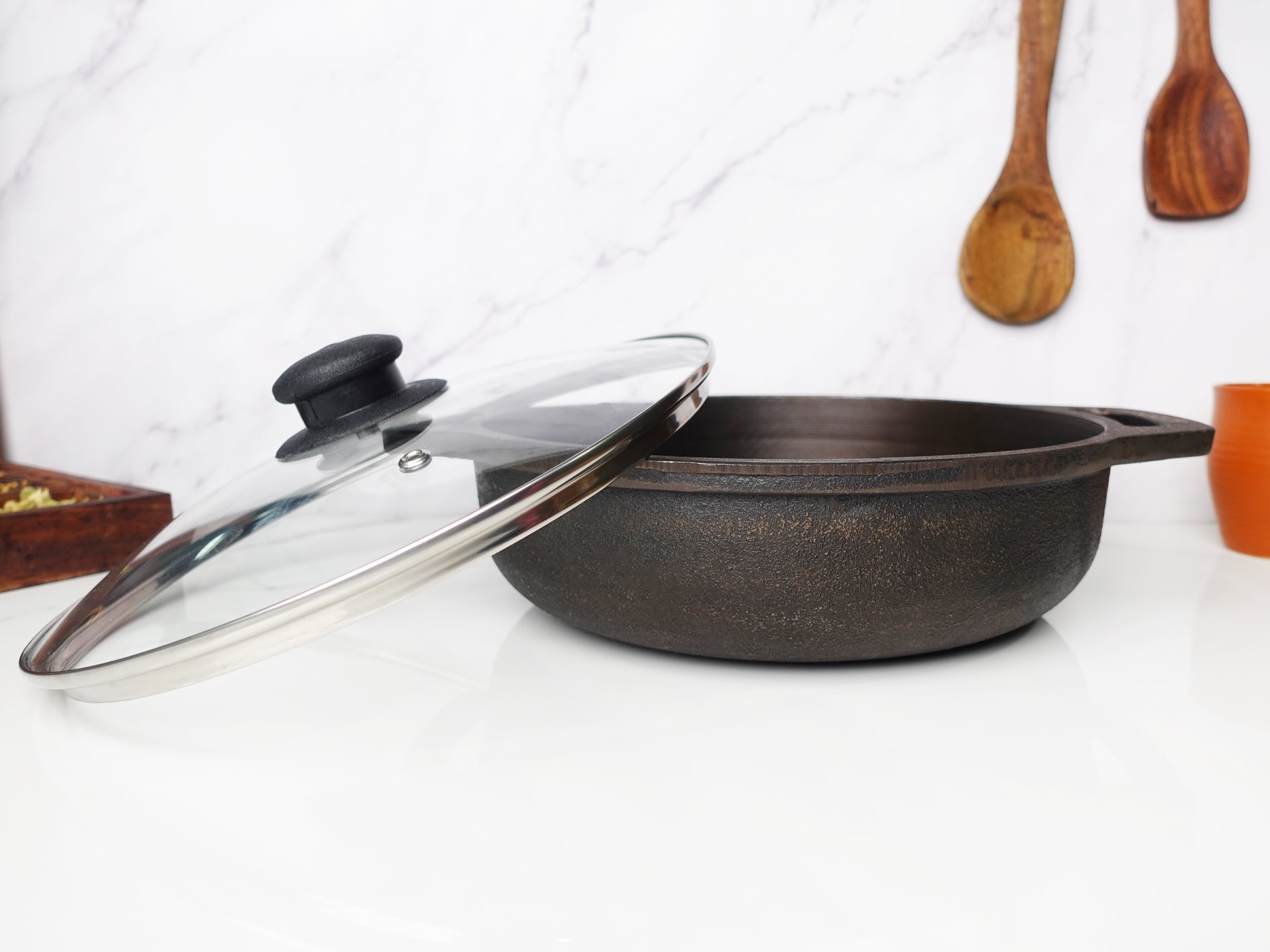 Kadai Cast Iron - Grinded Shallow - With Lid .