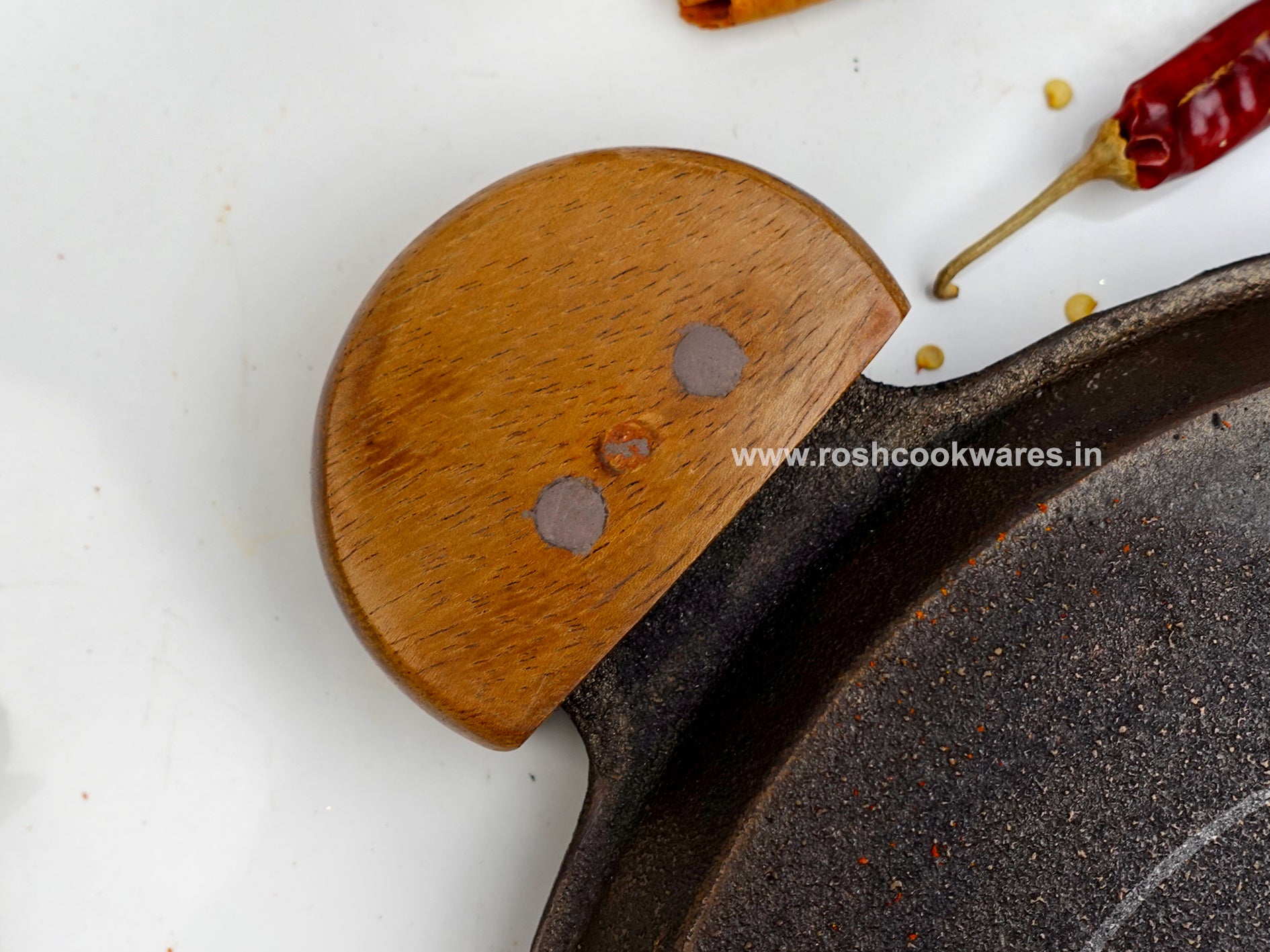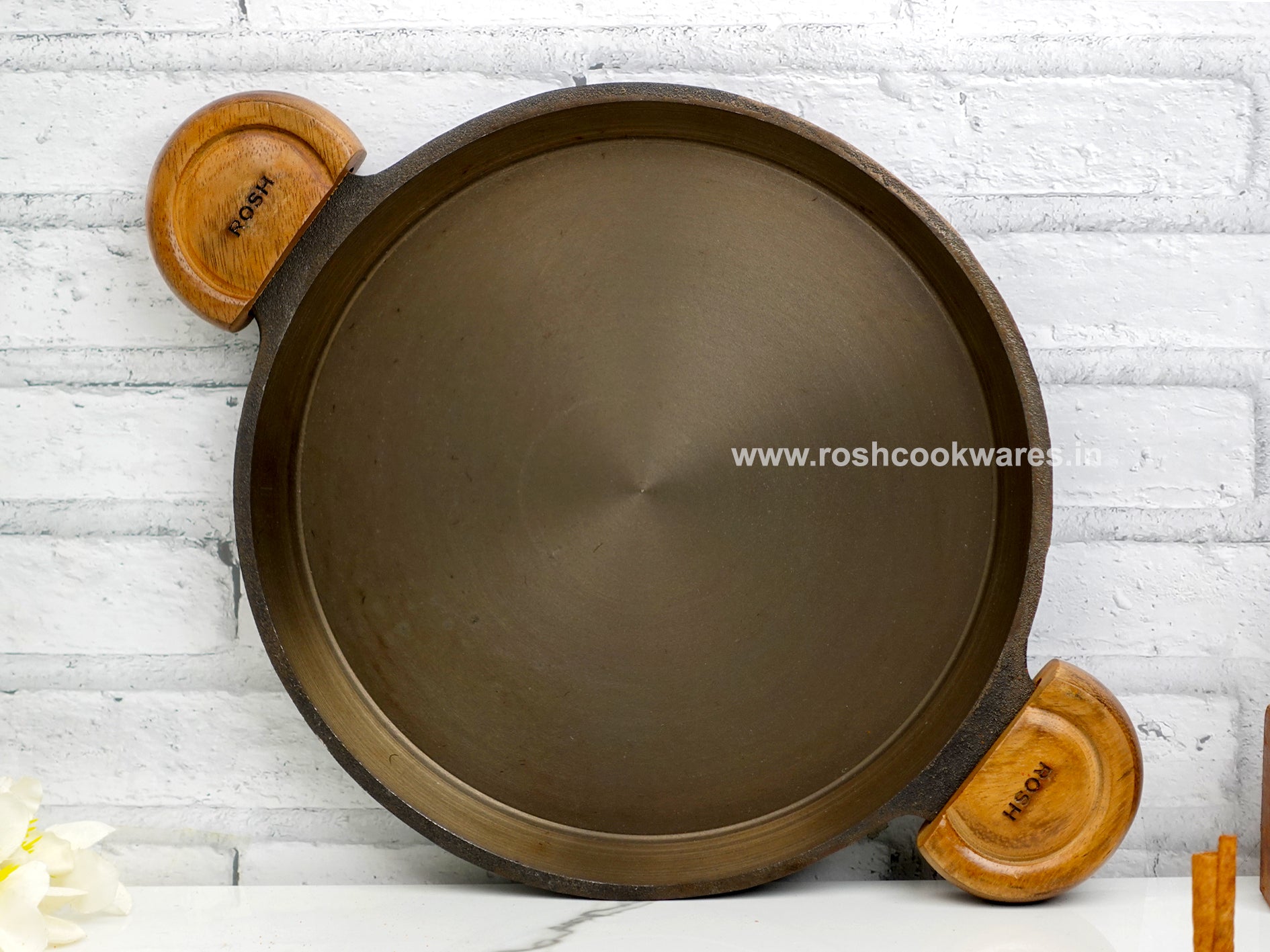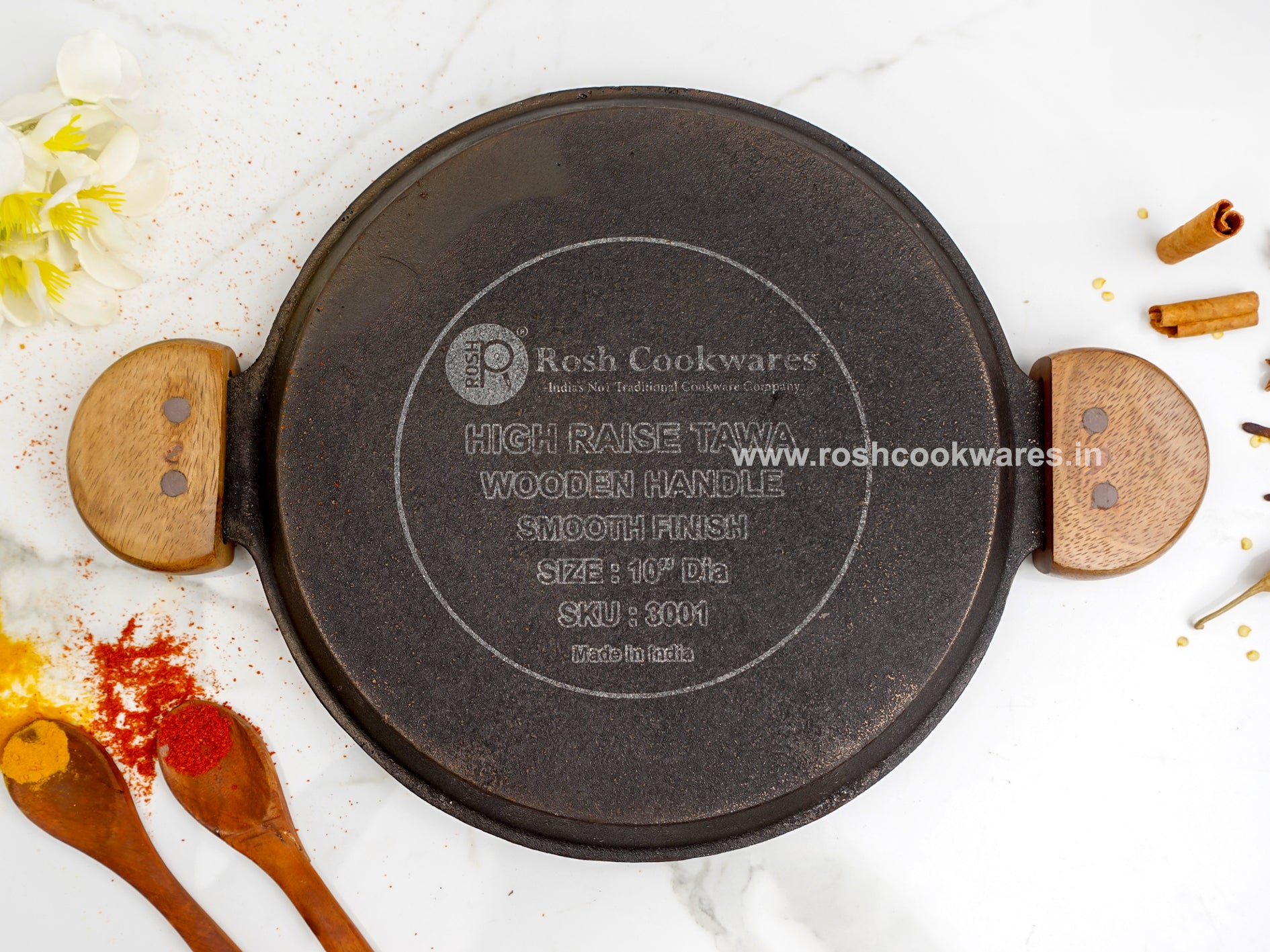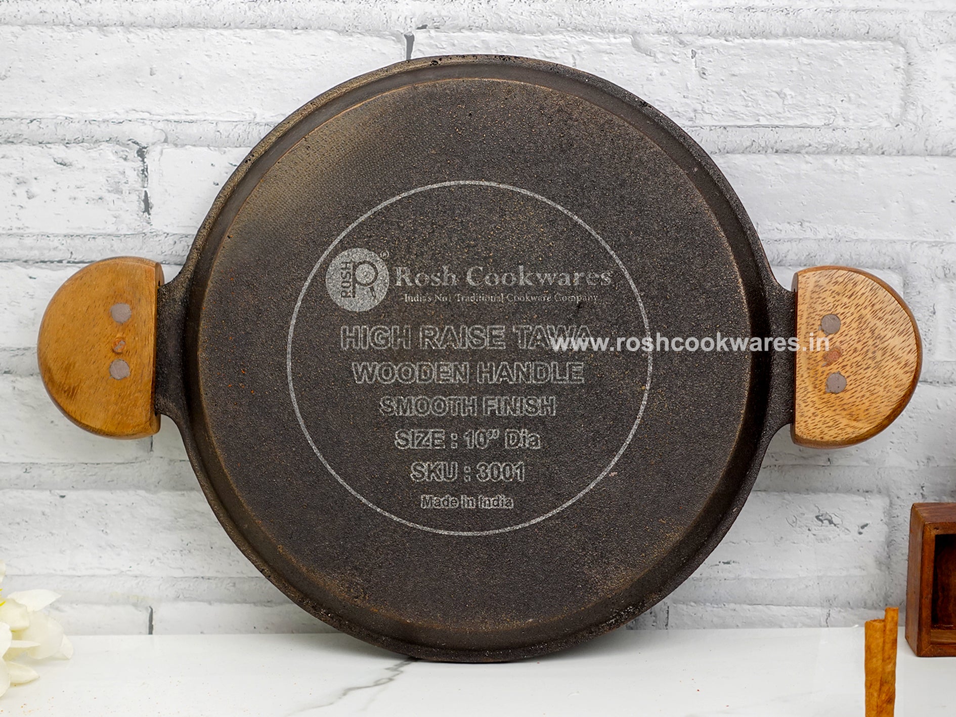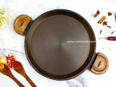 Home Wooden Handle - High Raise Tawa - Grinded - Cast Iron