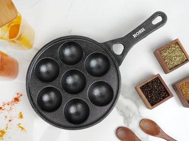Paniyaram Pan Cast Iron - Jumbo 7 Pit Round Induction Base Long Handle .
