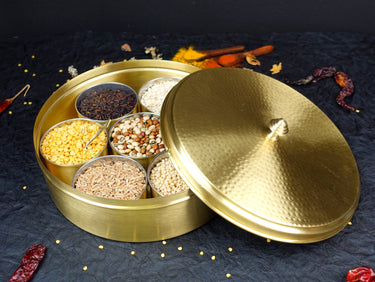 Spice Box - 9" Dia - Mat Finish - Hammered.