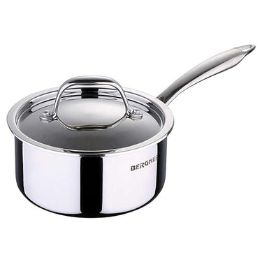 Bergner Argent Stainless Steel Saucepan with Lid, 1Ltr (14Cm X 7Cm), Silver,Non-Stick, 1 Liter