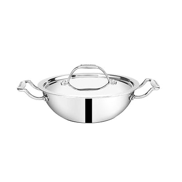 Bergner Argent Tri-Ply Stainless Steel Deep Kadhai with Stainless Steel lid (24 cm, 3.8 Liters, Induction Base, Silver), Standard (BGIN-1543)