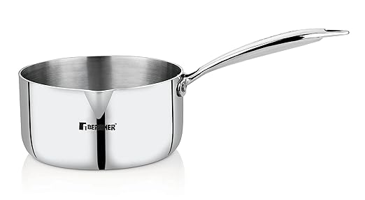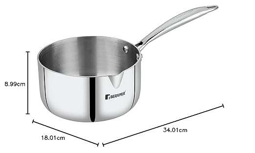 Bergner Argent Triply Stainless Steel Saucepan/Milkpan, 18 Cm, Induction Base, Silver,Non-Stick, 2.3 Liter