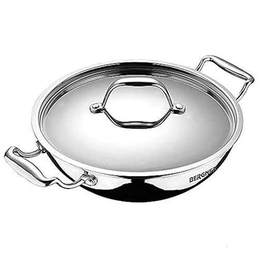 Bergner Argent Tri-Ply Stainless Steel Deep Kadhai with Stainless Steel lid (30 cm, 9.1 Liters, Induction Base, Silver), Standard (BGIN-1547))