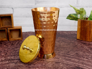 Copper Glass - Heavy - Bed Side - With Brass Lid - Life Time Product.